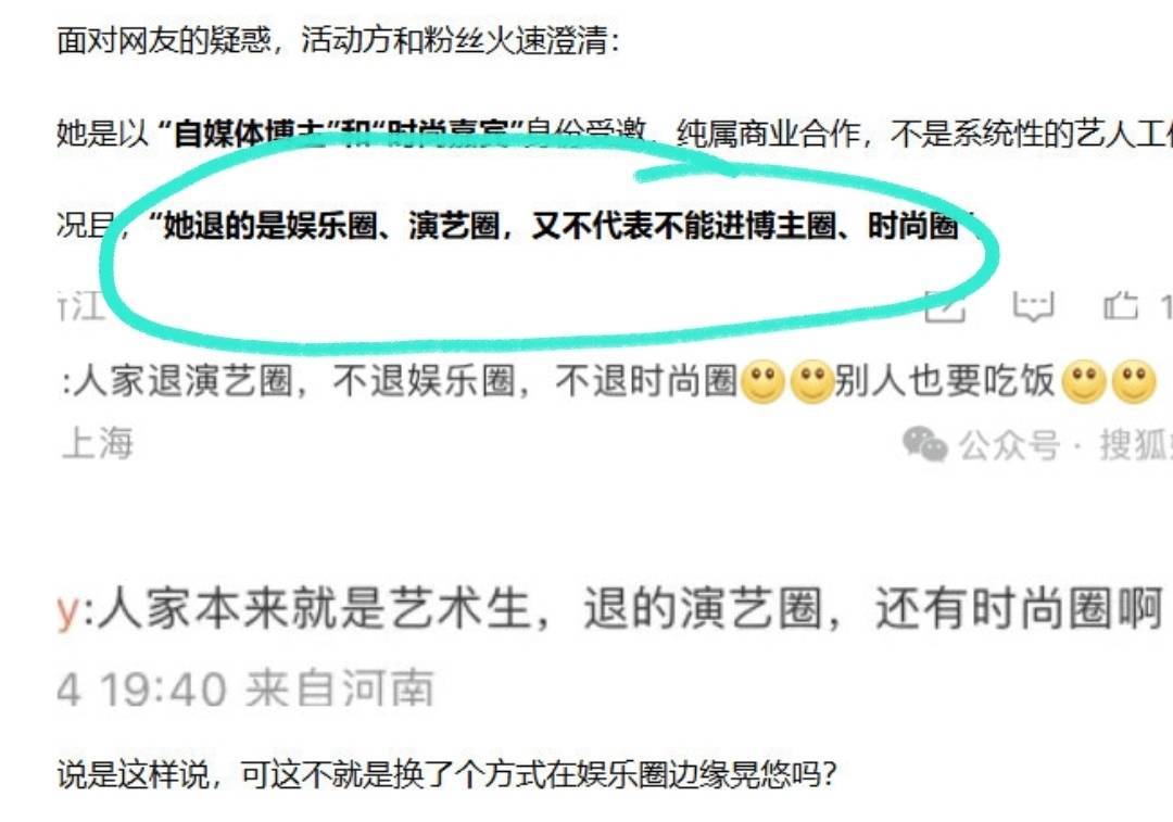 后面粉丝还解释了,说金子涵退出的是娱乐圈,时尚圈和博主圈没退,她是以“自媒体博主”和“时尚嘉宾”的身份受邀参与活动的,不是艺人……
