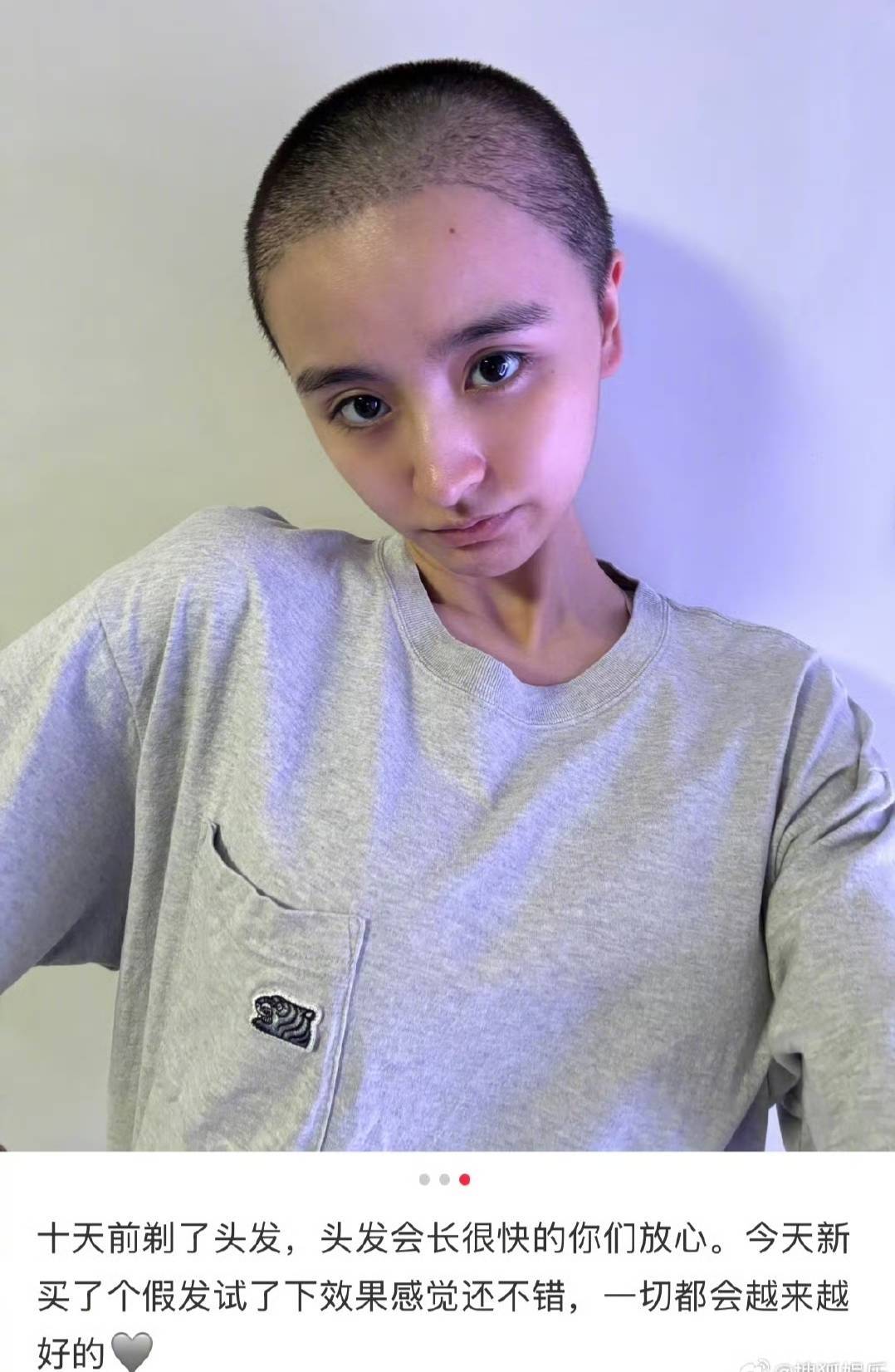 毕竟一个那么爱美的女明星,正常情况下是不会给自己弄个大光头,还拍照片晒出来的……