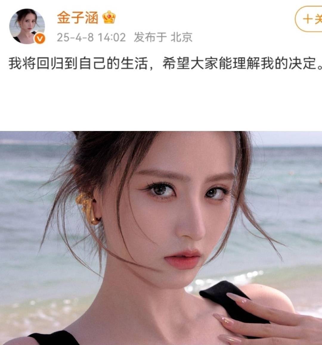 可能也是这个原因,在2025年4月,金子涵忽然清空自己账号,宣布退出娱乐圈,说要回归到自己的生活,希望大家能理解她的决定。